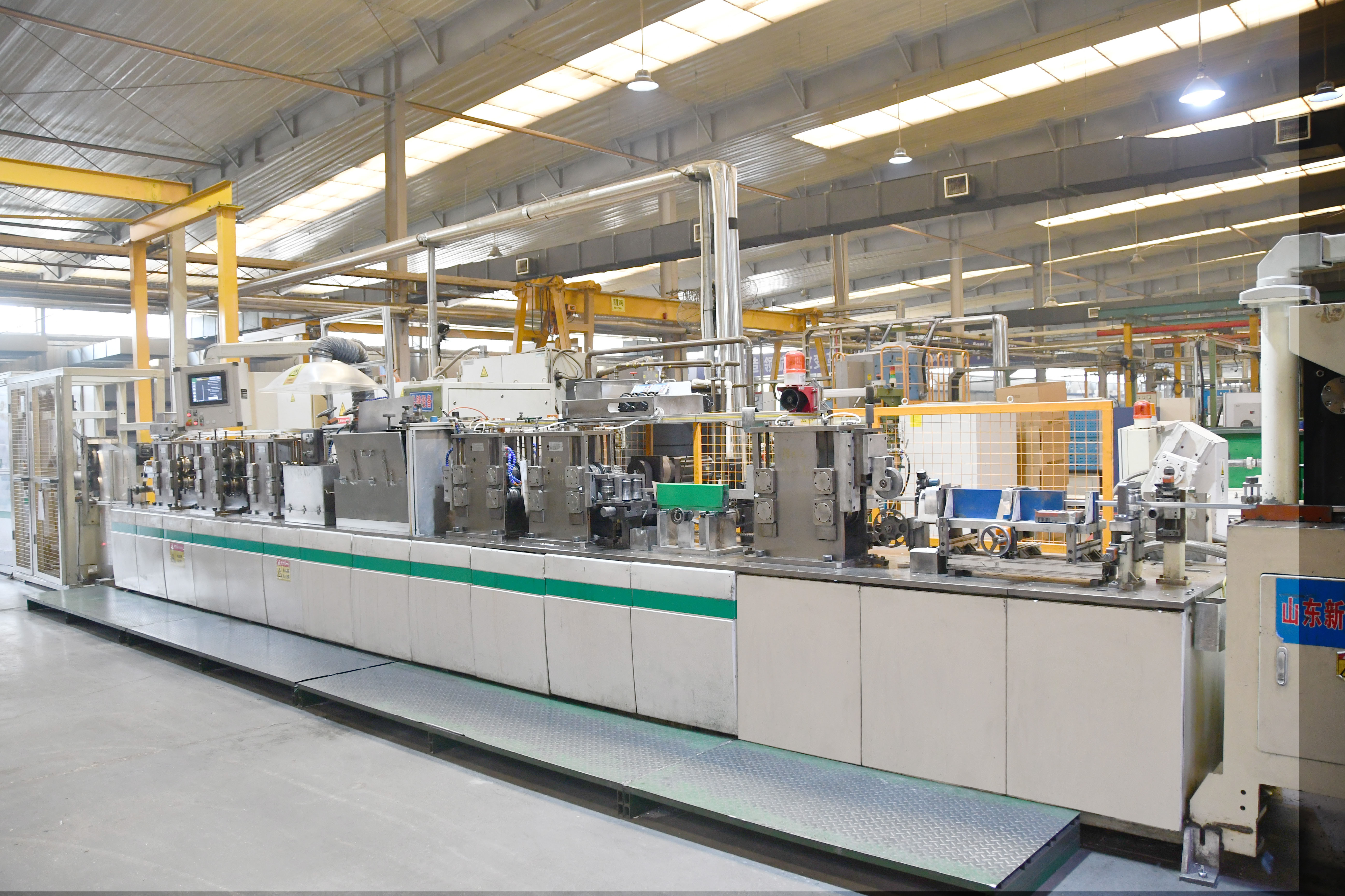 肖拉生產(chǎn)線:冷彎成型、高頻焊接,生產(chǎn)線速度可達(dá)200米/分,可生產(chǎn)鋁帶0.24mm-0.50mm料厚的40多種規(guī)格的汽車散熱器、中冷器用高頻焊管。
